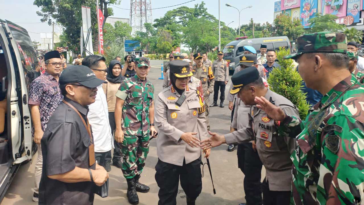 Kapolresta Cirebon Kombes Pol Sumarni didampingi Forkopimda melihat sarana dan prasarana dan tempat istirahat bagi pemudik di depan Ramayana, Kecamatan Weru, Kabupaten Cirebon, Kamis, 4 April 2024.