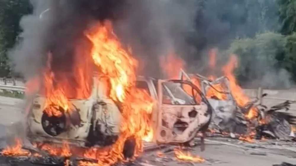 Sedangkan penumpang Terios yang juga sama-sama terbakar, masih sempat keluar dari mobil dan menyelamatkan diri.