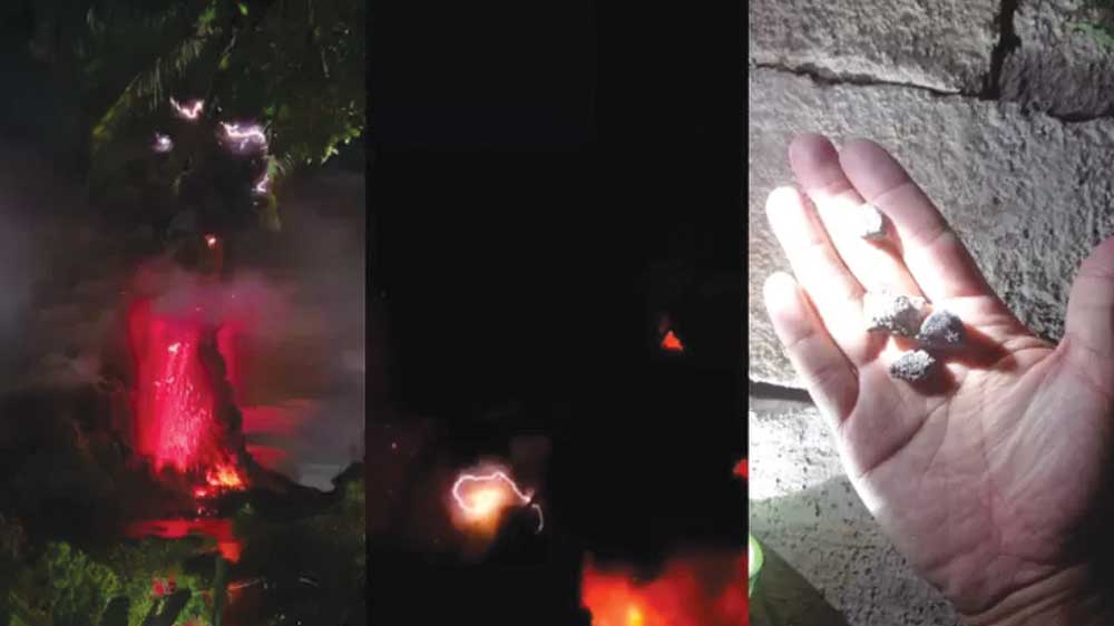 Dari laporan ke BNPD, saat erupsi eksplosif terjadi pada Rabu malam, 17 April 2024, dari puncak kawah Gunung Ruang juga menyemburkan berbagai material vulkanik, diantaranya batuan pijar.