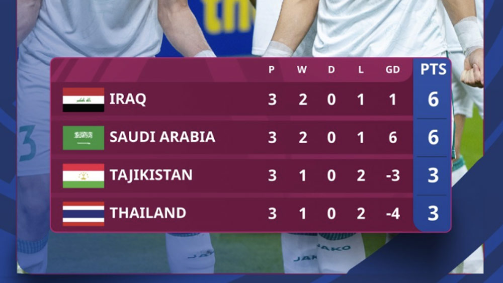 Meski kalah dari Irak, Arab Saudi tetap sebagai juara Grup C dan Irak menempati posisi runner up. Keduanya sama-sama mengoleksi 6 poin, namun Arab Saudi menang selisih gol. Ketiga ditempati Tajikistan karena selisih gol dengan 3 poin. Sedangkan Thailand di dasar klasemen, sama dengan 3 poin.***