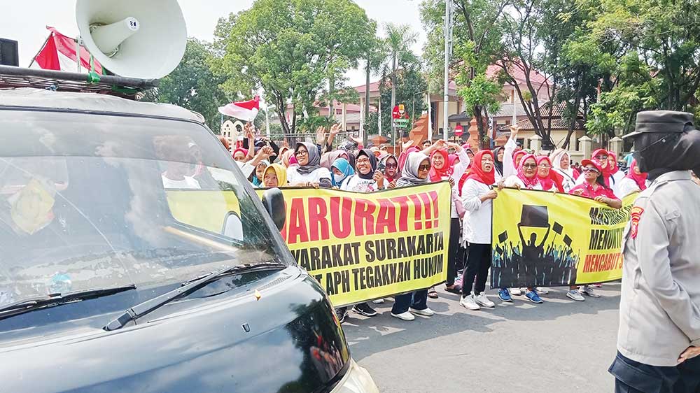 Peserta aksi unjuk rasa tersebut meminta Bupati Cirebon segera mencabut SK Kuwu Desa Surakarta, Kuryati.