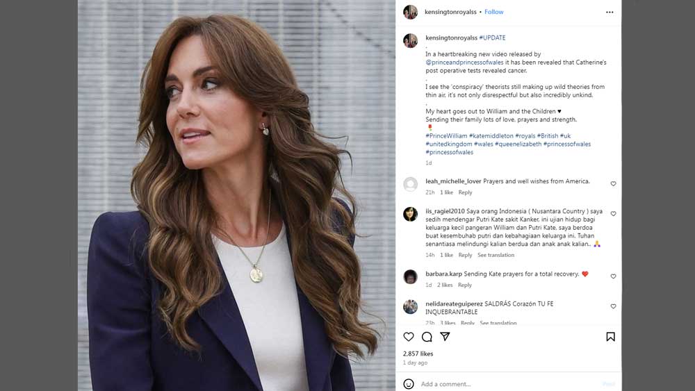 Jawaban Pangeran William membuat senang dan lega penggemarnya. Masyarakat Inggris turut bersedih ketika pada bulan Maret 2024 lalu, Kate Middleton mengaku kalau dirinya didiagnosis menderita kanker dan sedang menjalani kemoterapi.
