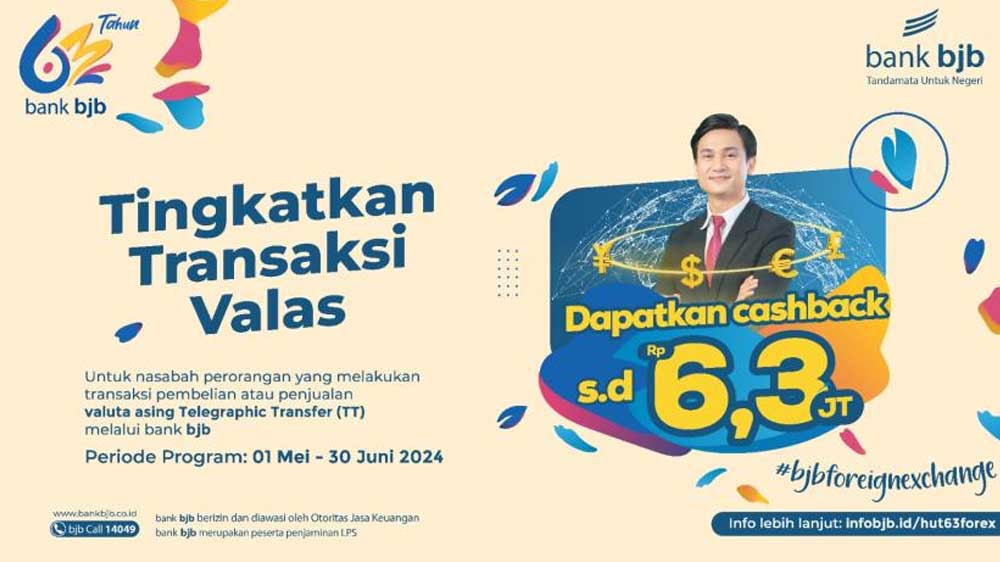 “Dengan hadiah-hadiah ini, bank bjb berharap dapat memberikan pengalaman yang menyenangkan dan berharga bagi nasabahnya dalam rangka memperingati ulang tahun bank yang ke-63. Program Cashback bjb ini berlangsung mulai tanggal 1 Mei hingga 30 Juni 2024,” jelasnya.