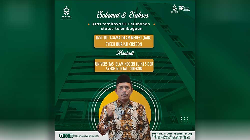 Rektor UIN Siber Syekh Nurjati Cirebon, Prof Dr H Aan Jaelani MAg menjelaskan, perubahan kelembagaan ini menjadi langkah maju untuk memposisikan Perguruan Tinggi Keagamaan Islam Negeri (PTKIN) ini menjadi satu-satunya Perguruan Tinggi Keagamaan Negeri (PTKN) berbasis siber di Indonesia.