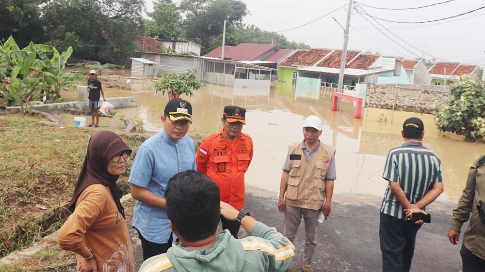 Selain itu, Pj Bupati Cirebon juga meninjau lokasi yang terendam banjir akibat luapan dari sungai Cisanggarung.