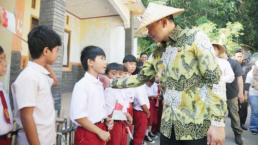 SUARA CIREBON – Penjabat (Pj) Bupati Cirebon, H Wahyu Mijaya memberikan motivasi kepada para guru dan murid SDN 3 Cipanas, Kecamatan Dukupuntang.