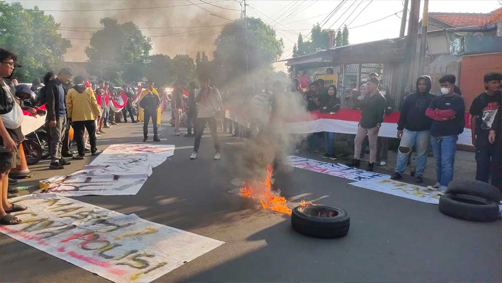 Ban bekas dibakar mahasiswa. Menambah ketegangan aat aksi unjuk rasa berlangsung. Mahasiswa Permahi meneriakan agar Polri bersikap professional dan tidak menutu-nutupi dugaan kekeliruan anggotanya dlama penanganan kasus kematian Vina dan Eky.