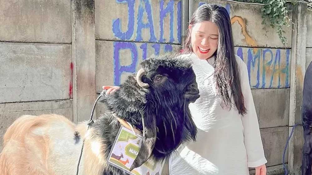 Dilihat dari unggahan diakun Instagram miliknya @viavallen pada Senin 17 Juni 2024, via Vallen berfoto dengan seekor kambing yang bertubuh gagah.