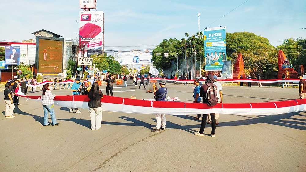 Dalam aksi yang kedua kali ini, mahasiswa memblokir Perempatan (lampu merah, red) Kejaksan yang merupakan salah satu akes menuju Markas Polres Cirebon Kota. Mahasiswa membentuk lingkaran menutup semua akses lampu merah, sambil membentangkan bendera merah putih.