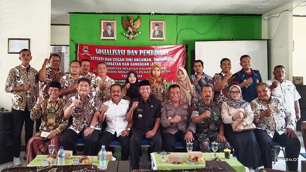SUARA CIREBON – Menjelang pemilihan kepala daerah (Pilkada) Badan Kesatuan Bangsa dan Politik (Kesbangpol) Kabupaten Cirebon bersama Pemerintah Kecamatan Ciwaringin, melaksanakan sosialisasi, pembinaan, deteksi dan cegah dini Ancaman Tantangan Hambatan dan Gangguan (ATHG) di Ciwaringin, Kamis, 11 Juli 2024.