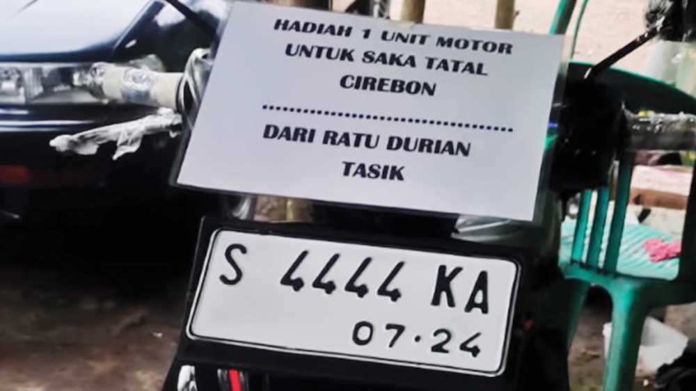 SUARA CIREBON – Tak hanya Pegi Setiawan, Ratu Durian asal Tasikmalaya, Tiara Rahmi Pertiwi juga memberikan hadiah untuk Saka Tatal.