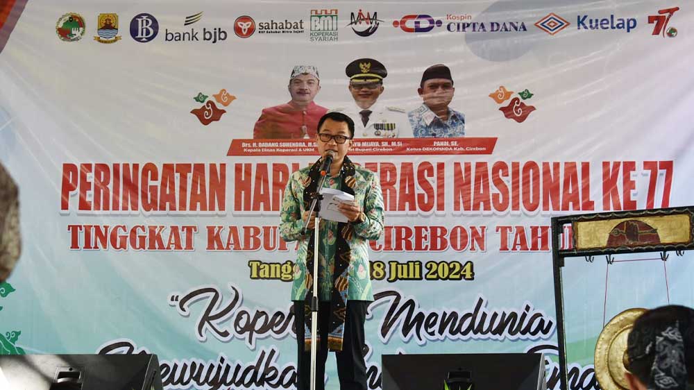 SUARA CIREBON – Penjabat (PJ) Bupati Cirebon, Drs H Wahyu Mijaya SH MSi menghadiri pembukaan Hari Koperasi ke-77 di Dinas Koperasi dan Usaha Kecil Menengah (Dinkop dan UKM) tingkat Kabupaten Cirebon di halaman kantor Dinkop UKM setempat, Selasa, 16 Juli 2024.