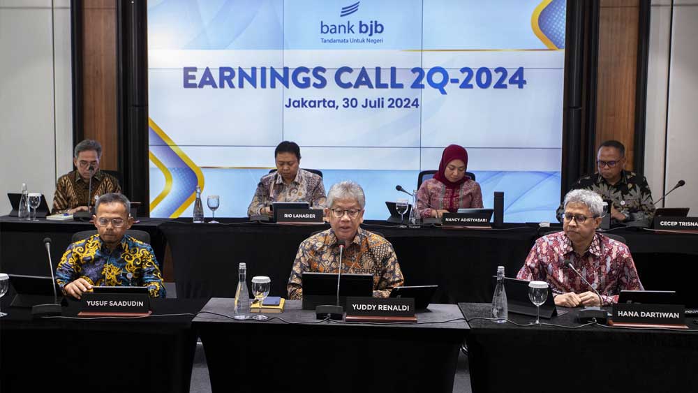 Dari sisi profitabilitas, bank bjb mencatatkan laba sebesar Rp931 miliar hingga akhir Juni 2024 “Capaian laba diiringi dengan efisiensi operasional yang kami lakukan,” jelas Yuddy, beserta jajaran dalam earnings call Triwulan II 2024, di Gedung bank bjb T-Tower, Jakarta, 30 Juli 2024.