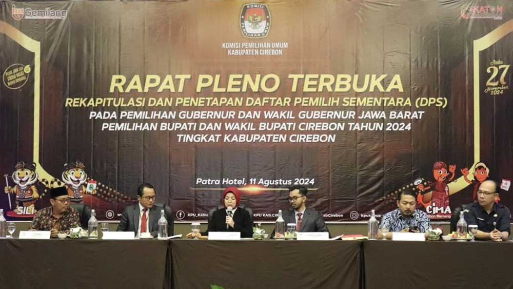 SUARA CIREBON – Komisi Pemilihan Umum (KPU) Kabupaten Cirebon telah melaksanakan Rapat Pleno Terbuka Rekapitulasi dan Penetapan Daftar Pemilih Sementara (DPS) pada Pemilihan Gubernur dan Wakil Gubernur Jawa Barat serta Pemilihan Bupati dan Wakil Bupati Cirebon Tahun 2024, di salah satu hotel kawasan Kedawung, Ahad, 11 Agustus 2024.