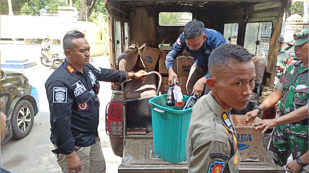 Satpol PP menerjunkan dua tim untuk melakukan razia di dua lokasi di dua kecamatan berbeda tersebut. Hasilnya, ratusan botol miras pabrikan dari berbagai jenis hingga miras jenis tuak berhasil diamankan Satpol PP.