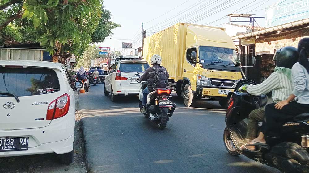 Pantauan Suara Cirebon di Jalan Pangeran Antasari, tepatnya di wilayah Desa Lurah, pada pukul 16.10 WIB nampak arus lalulintas yang didominasi kendaraan roda dua itu masih dilalui sejumlah truk.