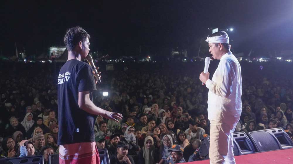 KDM muncul di Alun-alun Manonjaya, Kabupaten Tasikmalaya. Ia menyapa puluhan ribu warga yang antusias menunggu sejak sore hari.