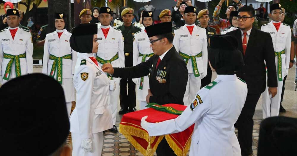 SUARA CIREBON- Penjabat (Pj) Bupati Cirebon, H Wahyu Mijaya resmi mengukuhkan Pasukan Pengibar Bendera Pusaka (Paskibraka) tingkat Kabupaten Cirebon tahun 2024 di Pendopo Bupati Cirebon, Kamis, 15 Agustus 2024 malam.