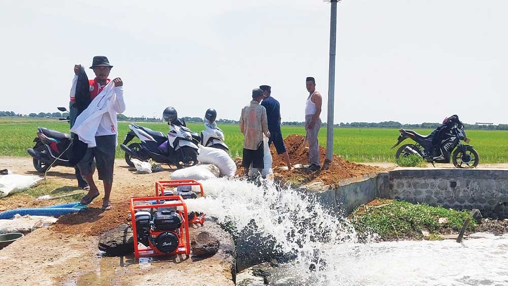 Mengetahui kondisi tersebut, para petani pun langsung berupaya menutup aliran air yang masuk ke sawah melalui saluran irigasi dengan cara dibendung. Sedangkan air laut yang sudah terlanjur masuk ke saluran irigasi, dilakukan penyedotan agar tidak masuk ke lahan pertanian.