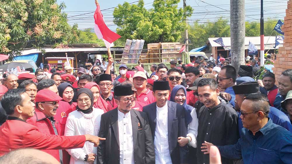 Tak hanya pengurus partai pengusung, pendaftaran pasangan yang diusung oleh PDI Perjuangan, NasDem dan Partai Hanura itu juga diantar ribuan pendukung. Pasangan Beriman ini tiba di kantor KPU sekitar pukul 13.00 WIB dan menjadi paslon pertama yang mendaftar ke KPU.