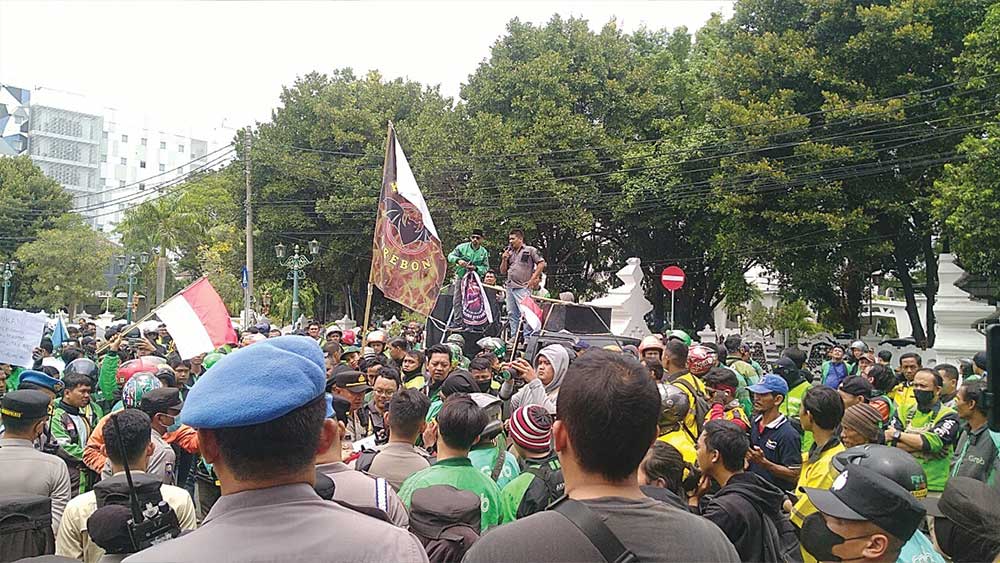 Dalam aksinya, para pengemudi ojol dari empat aplikasi berbeda, berkumpul sejak pukul 09.00 WIB di Jalan Dr Ciptomangunkusumo, sebelum bergerak menuju simpang empat Gunung Sari. Dari lokasi tersebut, mereka mendatangi Rumah Dinas Bupati Cirebon di Jalan RA Kartini Kota Cirebon, Balai Kota Cirebon dan DPRD Kota Cirebon.