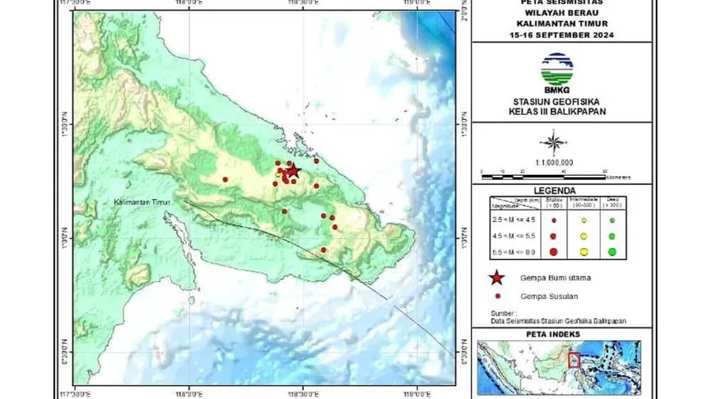 Gempa terkini di Kaltim, berdasar catatan Badan Meterologi Klimatologi dan Geofisika (BMKG), berkekuatan cukup besar mencapai Magnitudo atau M 5,5.