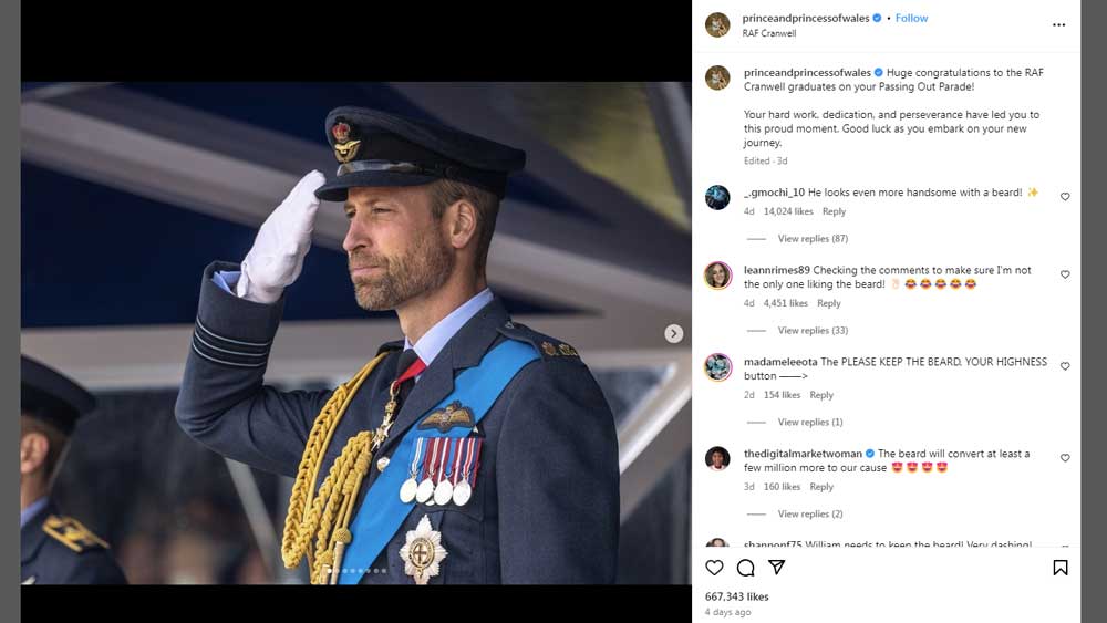 Akun tersebut juga mengunggah foto Pangeran Harry yang mengenakan setelan abu-abu dan kemeja putih.