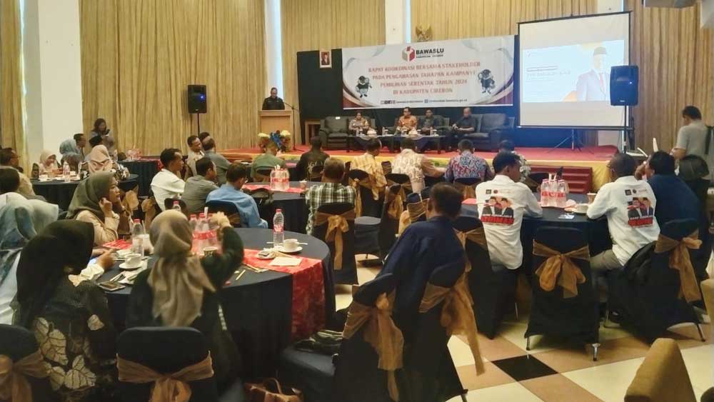 Pada Rapat Koordinasi Pengawasan Tahapan Kampanye Pemilihan Serentak 2024 di Kabupaten Cirebon ini digelar di salah satu hotel di wilayah Kedawung pada Jumat, 11 Oktober 2024.