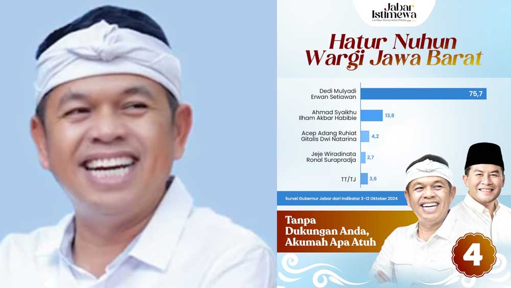 Pada survei terbarunya sampai pekan kedua Oktober 2024 ini, Indikator Politik menempatkan tingkat elektabilitas paslon KDM – Erwan mencapai 75,7 persen.