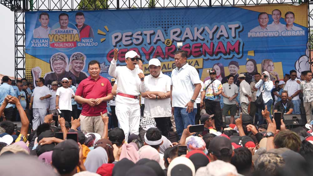 Pesta Rakyat di Majalengka digelar oleh Relawan Sahabat Yoshua Sirait, putra sulung Maruarar Sirait. Selain KDM, turut hadir juga Cabup-Cawabup Majalengka Eman Suherman dan Dena M Ramdhan.***