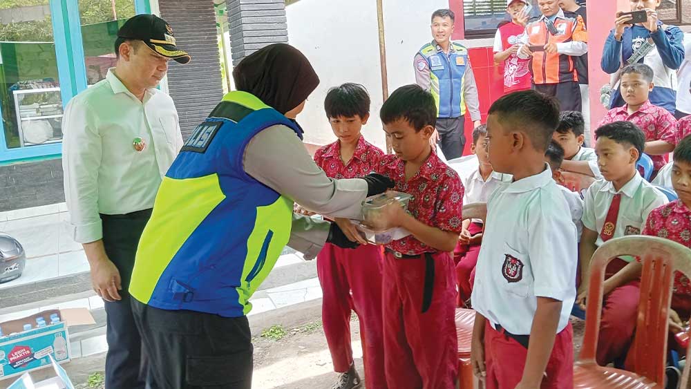 Menurut Sumarni, pemberian makanan bergizi gratis ini untuk mendukung program dari pemerintah pusat. Dimana dalam satu boksnya berisi nasi, daging, teriyaki, telur, sayuran, buah jeruk, susu, puding dan air mineral.