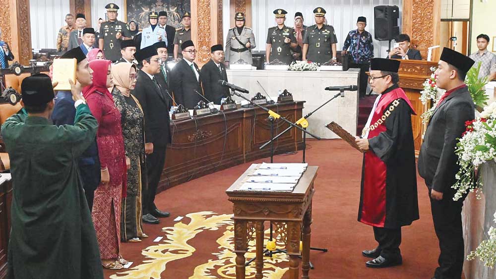 Pengucapan sumpah janji empat pimpinan DPRD Kabupaten Cirebon tersebut dipimpin Ketua Pengadilan Negeri (PN) Kabupaten Cirebon, Achmad Ukayat, disaksikan Pj Bupati Cirebon beserta Forkopimda dan seluruh anggota dewan juga tamu undangan.