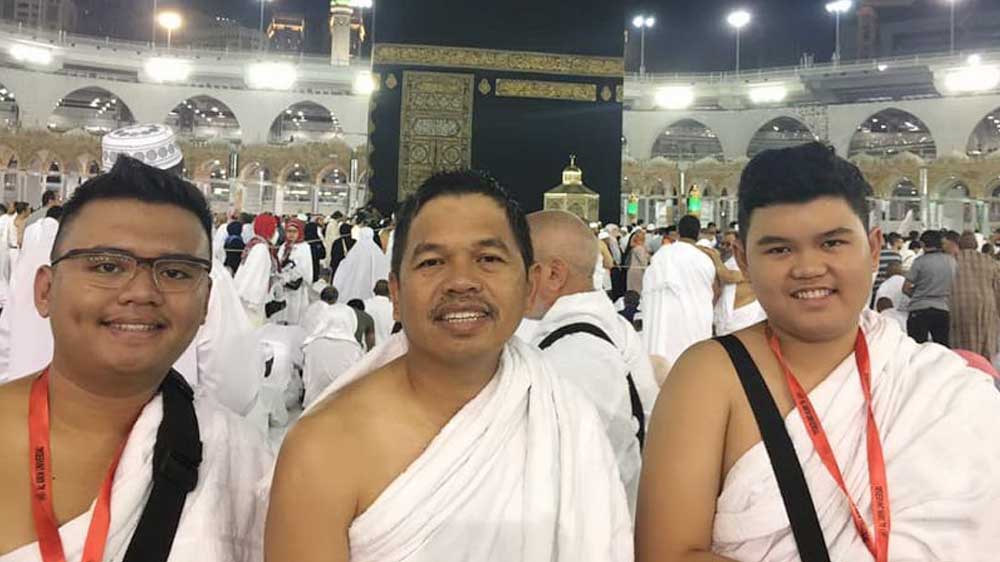 Terlihat, KDM sedang melakukan tawaf. Bersama dua putranya, lengkap mengenakan baju ihram, dua helai kain putih yang tidak dijahit untuk menutup aurat yang wajib dikenakan para jemaah haji.