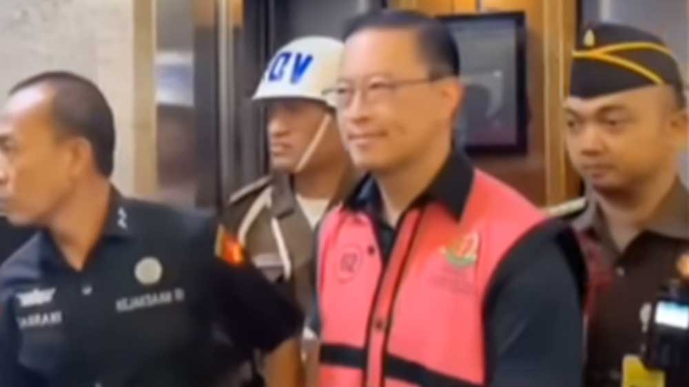 Terlihat dalam konferensi pers yang digelar oleh Kejaksaan RI, pria yang akrab disapa Tom Lembong itu tampak tersenyum di hadapan awak media.
