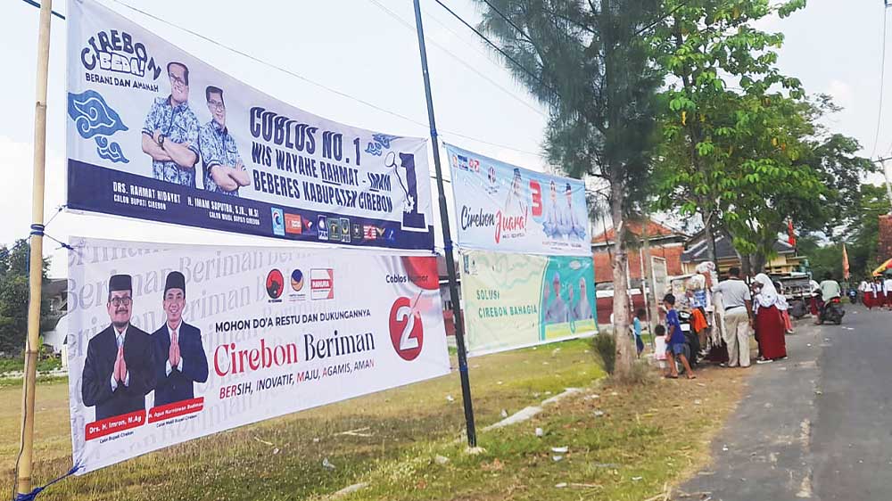 Selain baliho dan umbul-umbul, menurut Uyi, KPU juga memfasilitasi APK jenis sepanduk. Masing-masing paslon mendapat dua model spanduk, yang dipasang di setiap desa yang ada di Kabupaten Cirebon.