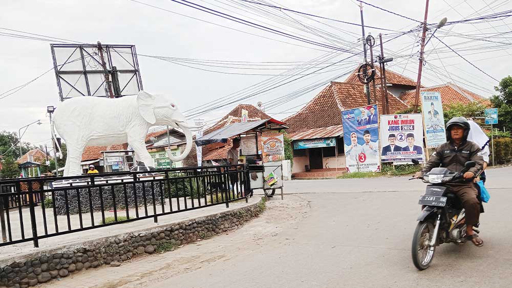 SUARA CIREBON – Keberadaan patung gajah di perempatan jalan Desa Palimanan Timur (Paltim), Kecamatan Palimanan dan di depan Balai Desa Palimanan Barat (Palbar), Kecamatan Gempol, Kabupaten Cirebon ditengarai tidak banyak diketahui maknanya oleh masyarakat.