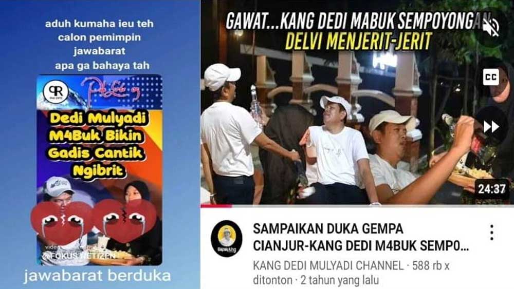 Video manipulasi berdurasi 1 menit 55 detik ini diberi judul “jawabarat berduka, Dedi Mulyadi Mabuk, Bikin Gadis Cantik Ngibrit”.