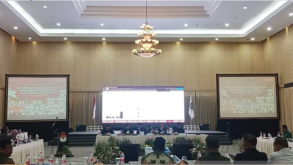 SUARA CIREBON – Komisi Pemilihan Umum (KPU) Kota Cirebon menggelar Rapat Pleno Terbuka Rekapitulasi Hasil Penghitungan Perolehan Suara Tingkat Kota Cirebon pada Pemilihan Gubernur dan Wakil Gubernur Jawa Barat serta Pemilihan Wali Kota dan Wakil Wali Kota Cirebon (Pilwalkot) Tahun 2024 di Grage Hotel, Senin, 2 Desember 2024.