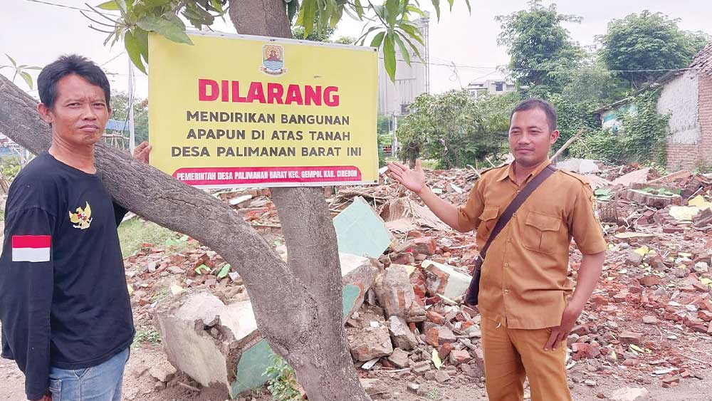 Salah satu pengawasan yang dilakukan ialah dengan memasang spanduk bertuliskan, “Dilarang Mendirikan Bangunan Apapun di Atas Tanah Milik Pemerintah Desa Palimanan Barat Ini”.