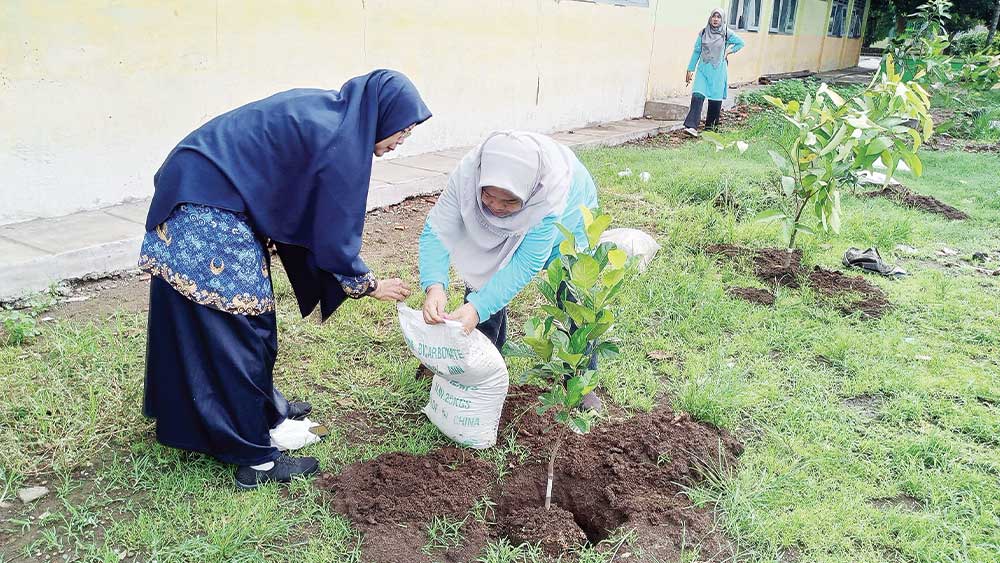 “Alhamdulillah bukan hanya siswa dan guru saja yang ikut terlibat dalam penanaman pohon ini, bahkan orang tua siswa pun sangat antusias mengikuti kegiatan tersebut,” ujarnya.