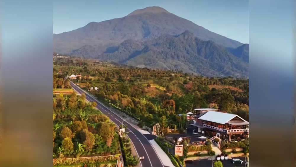 Restoran ini menawarkan pemandangan Gunung Ciremai yang megah.