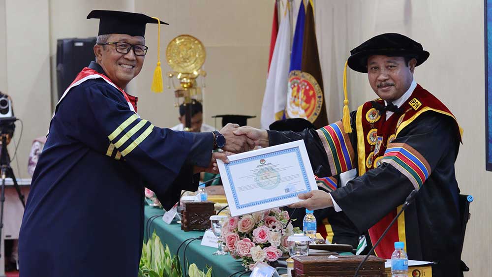 SUARA CIREBON – Penjabat (Pj) Wali Kota Cirebon Agus Mulyadi meraih gelar S3-nya sebagai Doktor Bidang Ilmu Pemerintahan di Institut Pemerintahan Dalam Negeri (IPDN) Jakarta, Selasa, 4 Februari 2025.