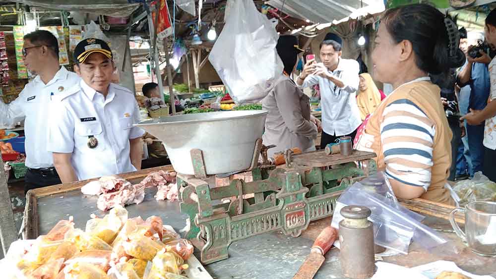 SUARA CIREBON – Wakil Bupati (Wabup) Cirebon, H Agus Kurniawan Budiman bersama Kapolresta Cirebon, Kombes Pol Sumarni melakukan monitoring harga bahan kebutuhan pokok dan penting (bapokting) di pasar tradisional Sumber, Kabupaten Cirebon, Rabu, 26 Februari 2025.