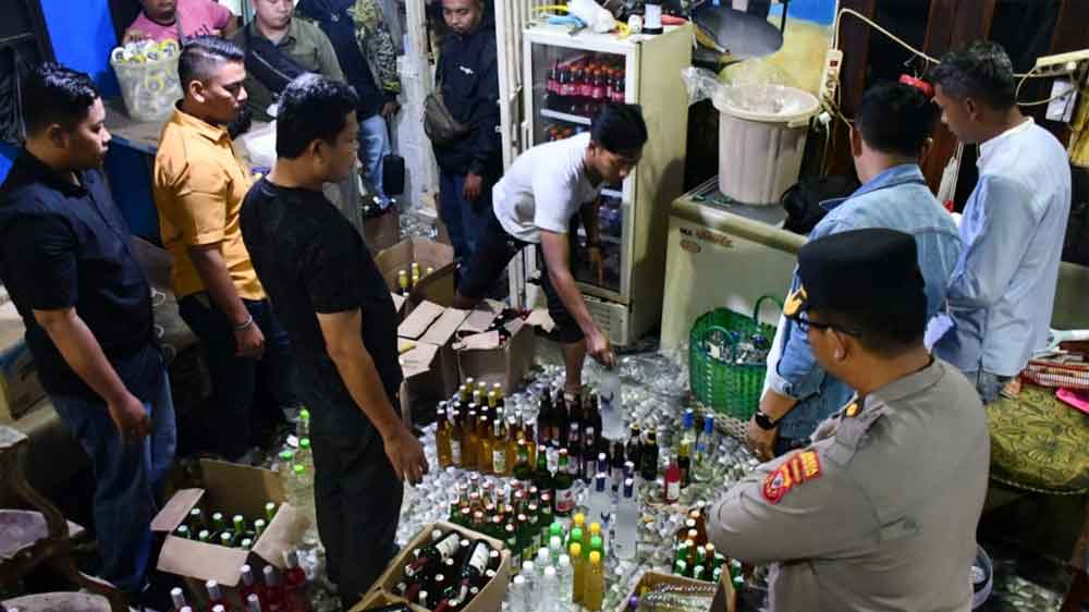 Hasilnya, sebanyak 618 botol miras pabrikan dari berbagai merek diamankan petugas.