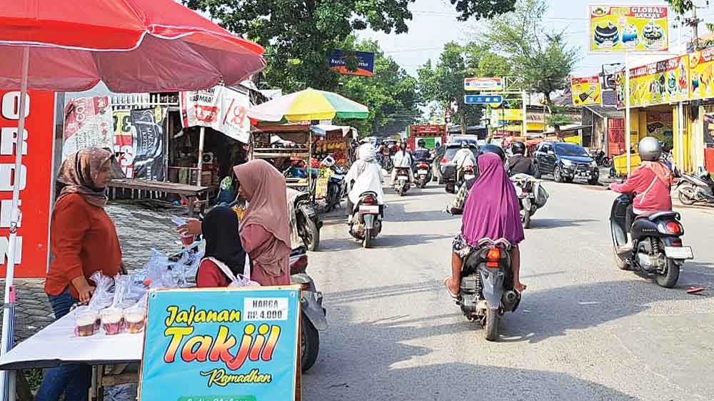 Tak terkecuali di Jalan Fatahillah, tepatnya di Desa Setu Kulon, Kecamatan Weru, Kabupaten Cirebon. Di sisi kiri kanan jalan tersebut banyak ditemui pedagang takjil, di antara ramainya lalu lalang kendaraan warga yang sedang ngabuburit.