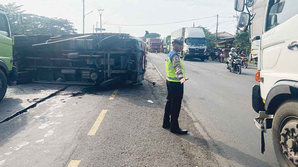Peristiwa itu menyebabkan arus kendaraan di jalur Pantura pun lumayan terganggu. Sambil menunggu evakuasi kendaraan, pihaknya mengalihkan lalu lintas satu arah di lokasi kejadian.