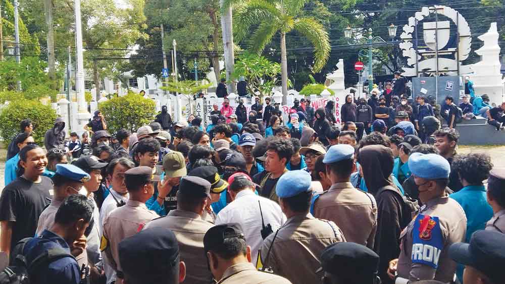 Saat dialog berlangsung, tiba-tiba datang sekelompok orang yang tidak mengenakan seragam almamater melakukan sejumlah tindakan anarkis. Petugas pun mengejar dan mengamankan sekelompok orang di luar rombongan mahasiswa yang menyusup ke dalam massa aksi menolak UU TNI tersebut.***