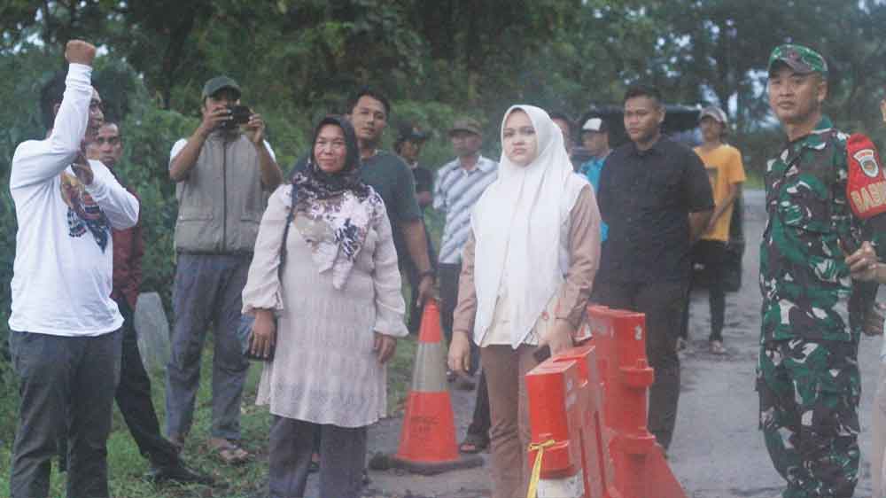 SUARA CIREBON – Ketua Dewan Perwakilan Rakyat Daerah (DPRD) Kabupaten Cirebon, Sophi Zulfia meninjau lokasi jalan longsor di Desa Belawa, Kecamatan Lemahabang, Rabu, 23 April 2025.