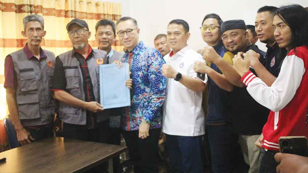 Saat menyerahkan formulir bakal calon ketua KONI Kota Cirebon, Andi Lee yang didampingi 15 ketua cabang olahraga (cabor) datang langsung ke Sekretariat KONI Kota Cirebon.