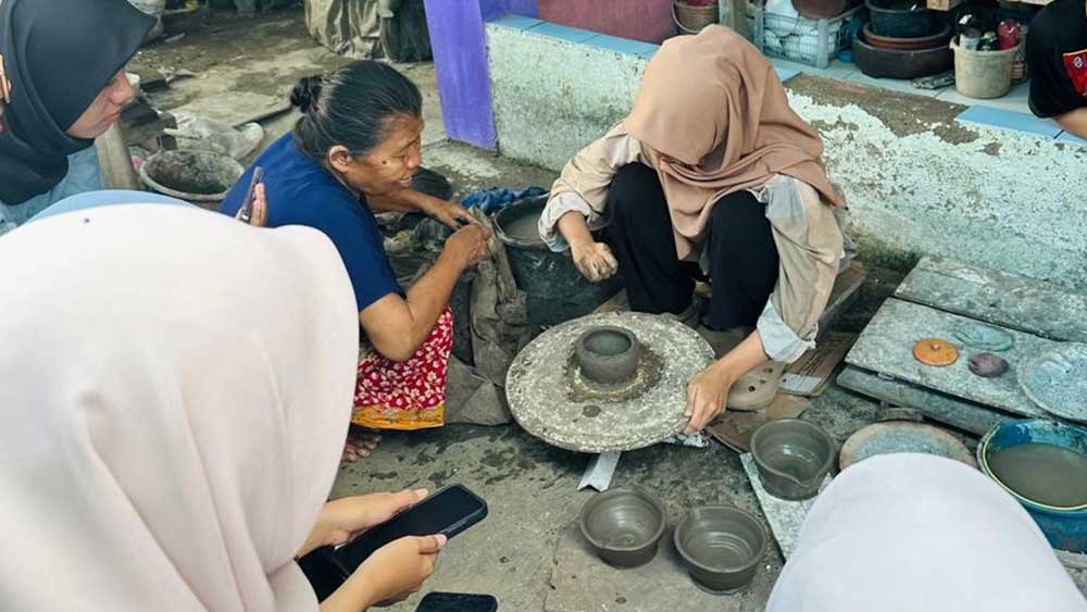 Para mahasiswa tidak hanya menyaksikan proses pembuatan gerabah secara teknis, tetapi juga menelusuri sejarah desa tersebut sebagai pusat pengrajin gerabah yang kini berkembang menjadi desa wisata berbasis budaya lokal.